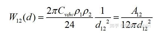 若取l為物質本體內分子間的距離d11,且兩半無限體為同一種物質時,則上式的互作用勢變為(取絕對值
