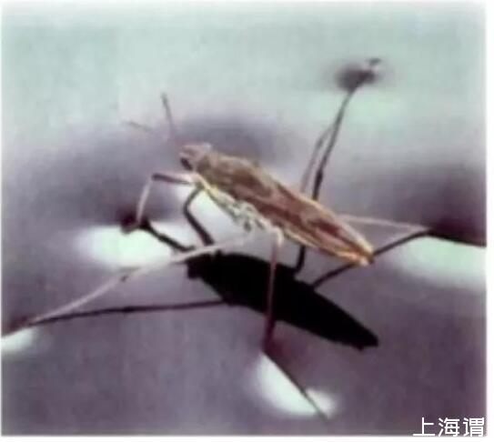 接下來(lái)我們看一下,水黽或者繡花針為什么能站在水面上?很顯然不是浮力的作用,如果有福利的話,必須要有排開(kāi)水的體積。