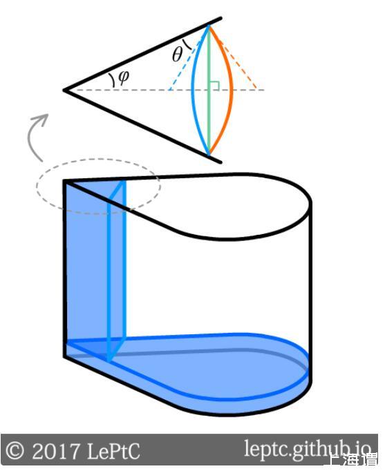 講到這里,我們已經有三種方法來解釋這個現象了:①水想增加自己跟玻璃管內壁的接觸面積,直到表面能的消耗不足以補償重力勢能;②固液接觸面的負張力把液體向上拉;③凹液面會降低液體內的壓強,從而外部氣壓把液體壓上來。三種方法都能推導出相同的結論,下圖中給出了第一種推法。