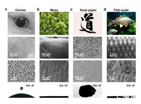 文章介紹了經(jīng)過億萬年進(jìn)化后自然界中選擇留下的各種優(yōu)異超鋪展表面,包括動物角膜、宣紙等。自然界中超鋪展表面的優(yōu)異性能直接決定了其正常作用的發(fā)揮甚至其生理功能。這些自然表面均使用了微納復(fù)合的多尺度結(jié)構(gòu)來實(shí)現(xiàn)超鋪展性能;從分子尺度的表面自組裝水分子結(jié)構(gòu)引起的新的親疏水界線(65°)到納米結(jié)構(gòu)和微觀結(jié)構(gòu)在超鋪展過程中的宏觀各自作用,綜述了超鋪展本質(zhì)機(jī)理研究的最新進(jìn)展;進(jìn)一步總結(jié)了常用的超鋪展表面制備方法、介紹了超鋪展表面的應(yīng)用領(lǐng)域,提出了超鋪展體系,總結(jié)了該領(lǐng)域存在的挑戰(zhàn)。