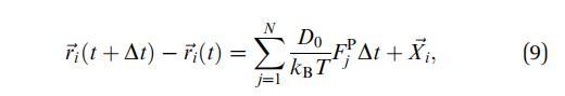 其中,FPj是由于所有其他N 1圓盤作用在圓盤j上的直接總力,D0是圓盤擴散系數,kB是玻爾茲曼常數,T是溫度,%Xi是源于溶劑-粒子碰撞的粒子i的隨機位移矢量。%Xi從具有零均值和協方差矩陣的高斯分布中采樣: