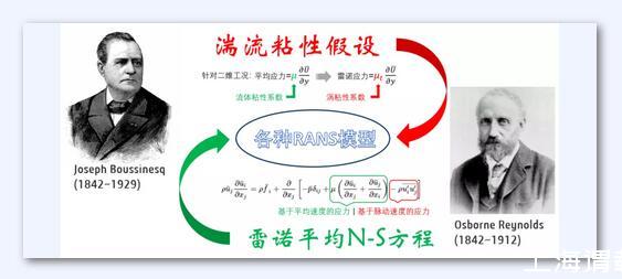 湍流粘性來(lái)源于雷諾平均的N-S方程,下式中多出來(lái)的脈動(dòng)應(yīng)力項(xiàng),稱之為雷諾應(yīng)力。1877年Boussinesq借助于牛頓切應(yīng)力公式,提出了影響深遠(yuǎn)的渦粘性假設(shè):雷諾應(yīng)力正比于時(shí)均速度梯度,其中比例系數(shù)μt表征了湍流脈動(dòng)引起的切應(yīng)力效應(yīng),稱為渦粘性系數(shù)。
