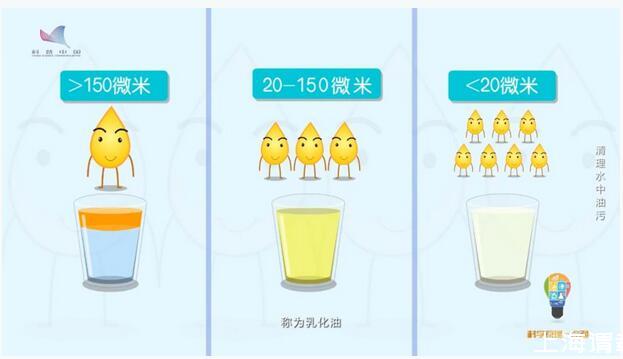 油是怎么存在水中的?油在水中的存在形式,根據油滴的粒徑,可以分為三類,油滴粒徑大于150微米稱為“浮油”,這也是油進入水體的主要存在形式;油滴粒徑在20-150微米之間稱為“分散油”;油滴粒徑小于20微米的稱為“乳化油”。不管是表面活性劑穩定的油滴,還是無表面活性劑穩定的油滴,極小的乳化油以油包水或水包油的形式懸浮于水中。