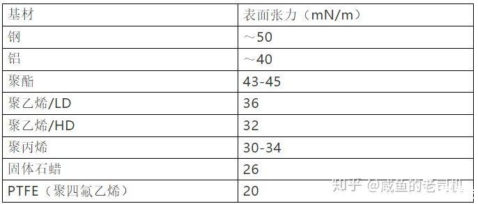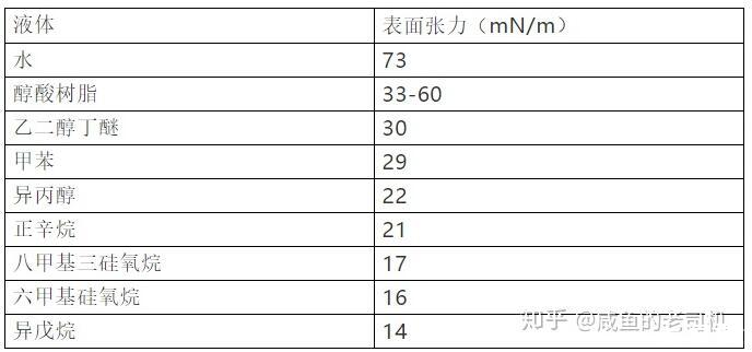 常見物質(zhì)的表面張力狀況