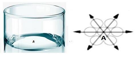 圖1水平面A點(diǎn)示意圖 圖2 A點(diǎn)表面張力方向